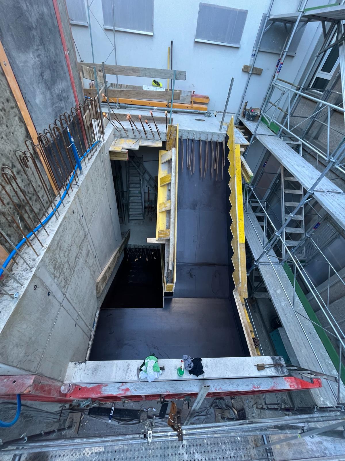 Création d’une cage d’ascenseur et d’une cage d’escalier contre le bâtiment existant :