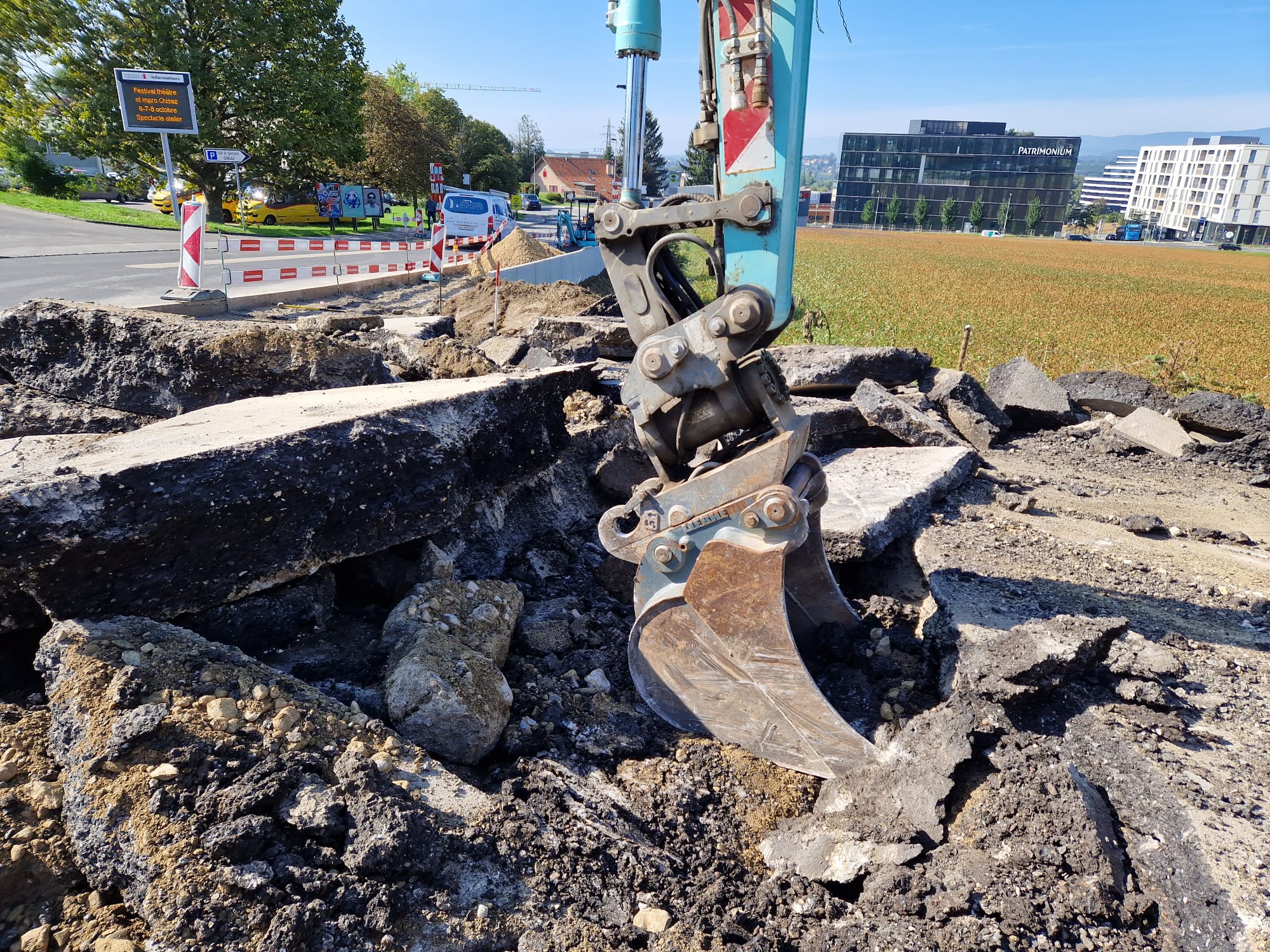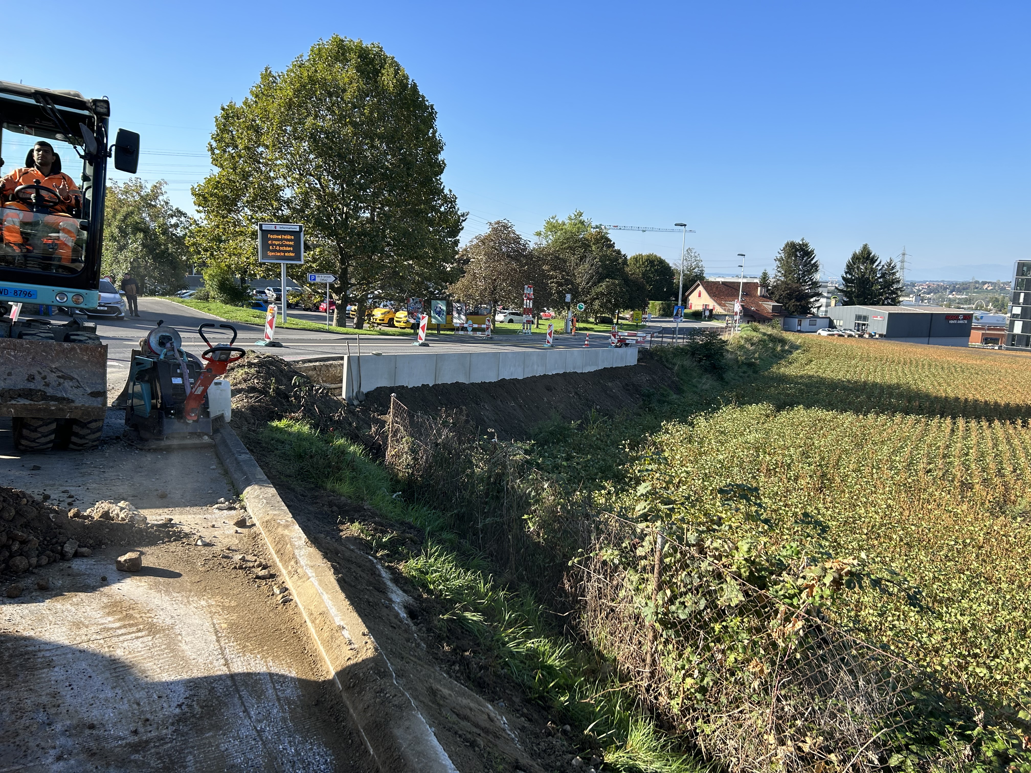 Travaux de génie civil concernant la construction d’un trottoir pour entre la sortie de la RC 251 en direction de la route de la Carrière sur le bord ouest de la chaussée avec la création d'une zone de verdure arborisée.
