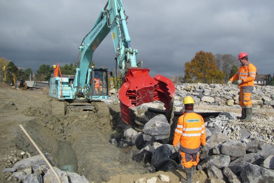 Déplacement de terrains de Beach-volley Dessouchage et broyage sur site Terrassement et remblai Construction de berges en enrochement Construction d’îlots pour oiseaux et caches à poissons Construction de chambres de contrôle et grilles Pose de collecteurs + services et construction de chambres de visite Construction de culées en béton pour une passerelle à trafic léger Construction de chemins piétons et d’un parking pour remorques à bateaux Pose de revêtements bitumineux