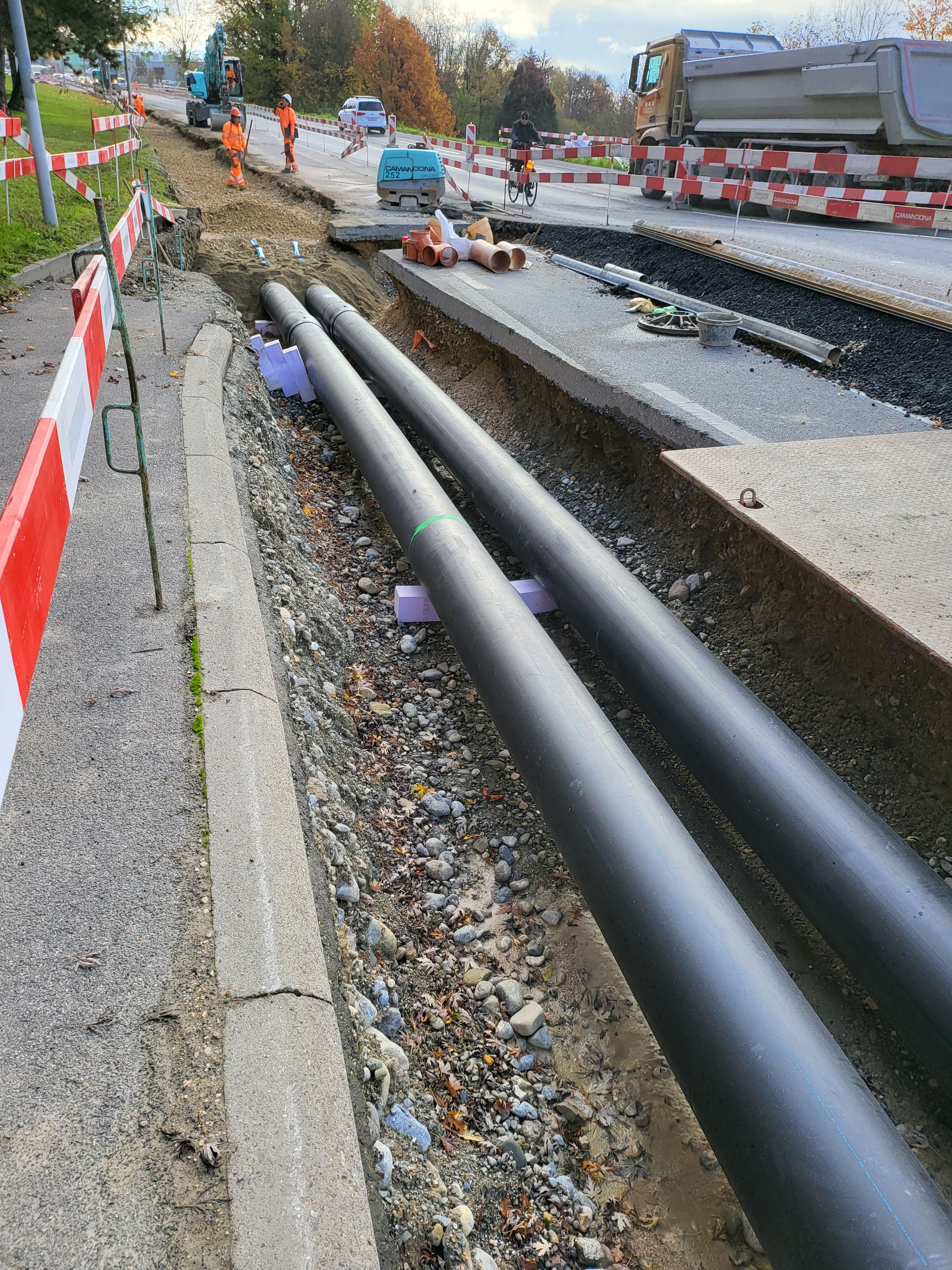Travaux de génie civil pour raccordement du quartier Ley-Outre au réseau du chauffage à distance.
